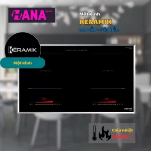 - Thiết kế hiện đại, sang trọng và bền bỉ: Bếp được trang bị mặt kính Keramik cao cấp, bo viền Aluminum chắc chắn với kiểu dáng vát 4 cạnh tinh tế, tạo điểm nhấn thẩm mỹ cho không gian bếp. Kích thước bếp 750 x 430 x 60 mm cùng kích thước cắt đá chuẩn 695 x 395 mm giúp dễ dàng lắp đặt và phù hợp với nhiều kiểu tủ bếp.