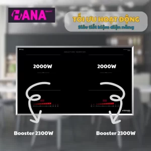 - Vùng nấu trái: 2000W (tăng tốc Booster 2300W)