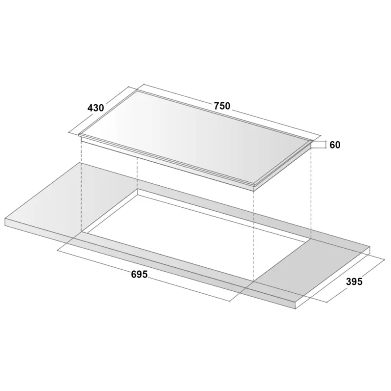 - Kích thước lắp đặt chuẩn châu Âu (750 x 430 mm), phù hợp nhiều loại tủ bếp hiện đại.