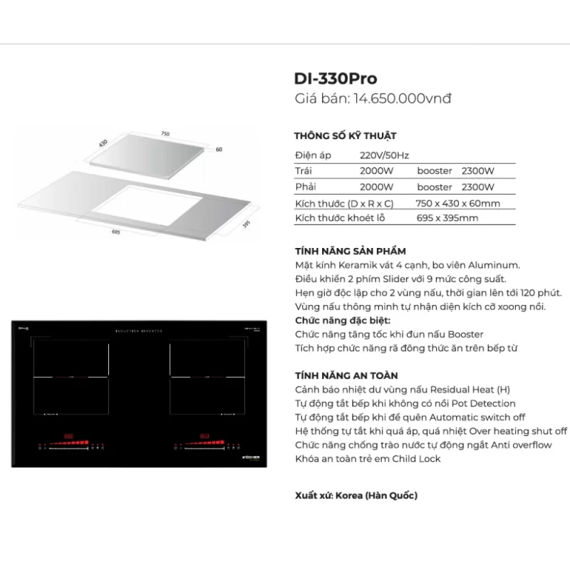 Thông Số Kỹ Thuật Bếp từ Kocher DI-330Pro