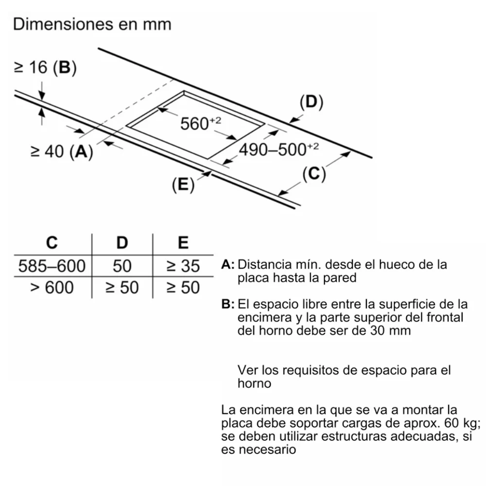 - Kích thước mặt bếp (CxRxS): 51 x 602 x 520 mm