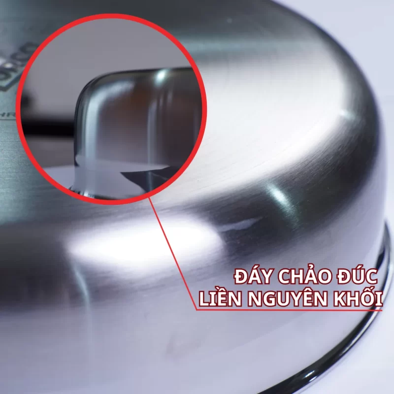 - Thân chảo inox SS 304 và SS 430: Chống ăn mòn, an toàn khi tiếp xúc với thực phẩm.