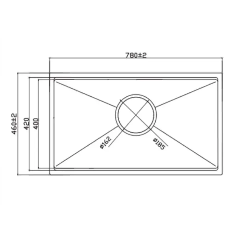 - Kích thước lớn 780 × 460 mm, thoải mái rửa nồi chảo to và tối ưu không gian thao tác.