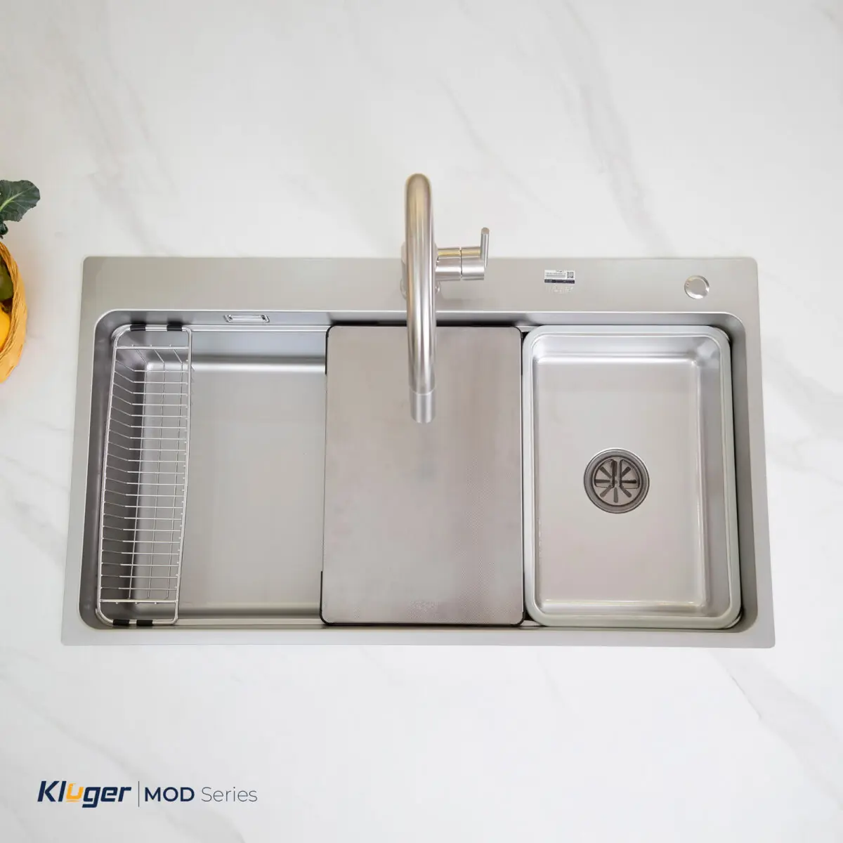 Trong xu hướng thiết kế nhà bếp hiện đại, một chiếc chậu rửa bát không chỉ đáp ứng nhu cầu sử dụng mà còn phải thể hiện sự tinh tế và đẳng cấp. Chậu rửa bát Kluger KF8850FS Plus, thuộc bộ sưu tập MOD SERIES, với thiết kế màu bạc (Silver) sang trọng và bộ phụ kiện PLUS tiện ích, là lựa chọn lý tưởng cho những không gian bếp cao cấp.