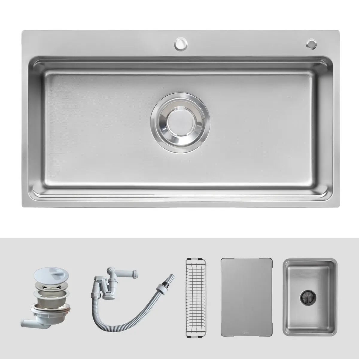 - Chất liệu cao cấp: Sử dụng thép không gỉ POSCO 304 với độ dày 1.0 mm (thành dày 3.5 mm), kết hợp công nghệ ép khuôn liền khối, đảm bảo độ bền vượt trội, chống ăn mòn và gỉ sét trong môi trường ẩm ướt của nhà bếp.