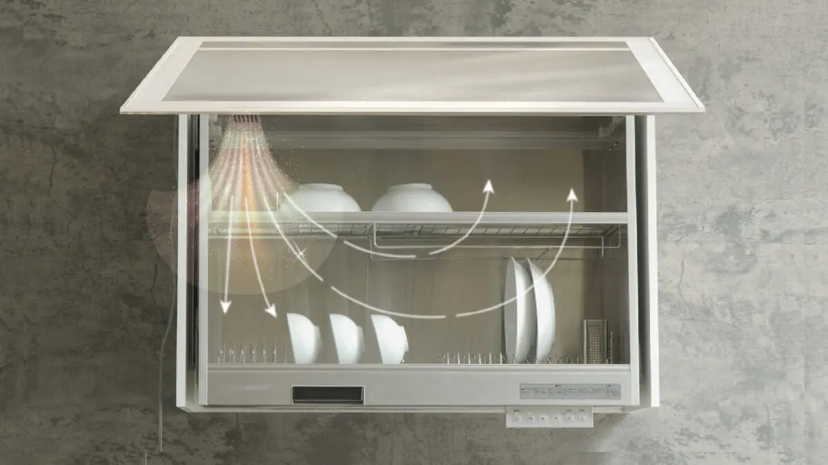 - Chức năng sấy khô tuần hoàn (Circulating Drying Technology): Sấy khô bát đĩa bằng nhiệt (khoảng 65°C) mà không cần ống thoát khí, giúp diệt khuẩn, ngăn ngừa nấm mốc. Chế độ sấy khoảng 120 phút + làm ấm 20 phút.