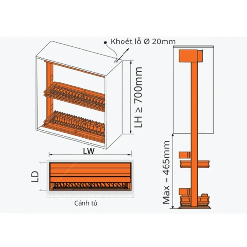 - Kích thước tủ phù hợp: Khoang tủ rộng 700 mm.