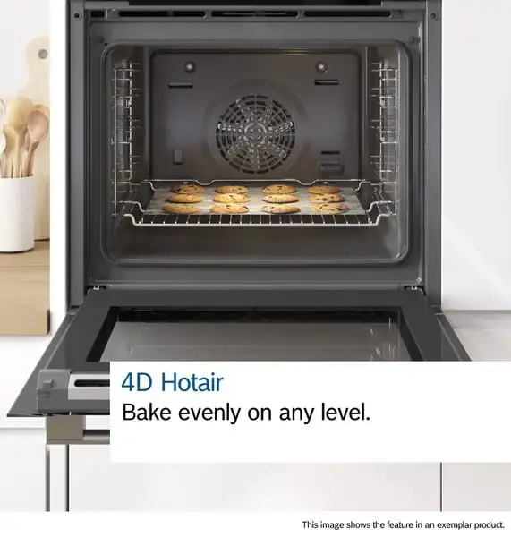 - Công nghệ 4D HotAir phân bổ nhiệt đều trong toàn bộ khoang lò, giúp thực phẩm chín đồng đều ở mọi vị trí