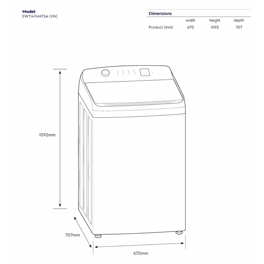Thông số kỹ thuật Máy giặt ELECTROLUX EWT1474M7SA
