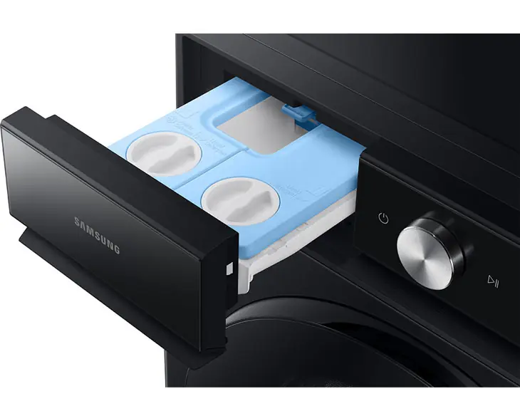Ngăn chứa nước giặt và nước xả thiết kế riêng biệt, hỗ trợ hòa tan đều chất giặt xả trong suốt chu trình giặt.