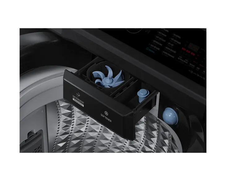 - Ngăn nước giặt và nước xả bố trí khoa học: Giúp hòa tan dung dịch tốt hơn, phân phối đều trong lồng giặt, nâng cao hiệu quả làm sạch.