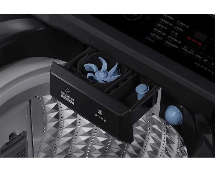 Ngăn nước giặt – nước xả thông minh, tự động phân bổ đúng liều lượng, hạn chế tình trạng cặn bám trên quần áo.
