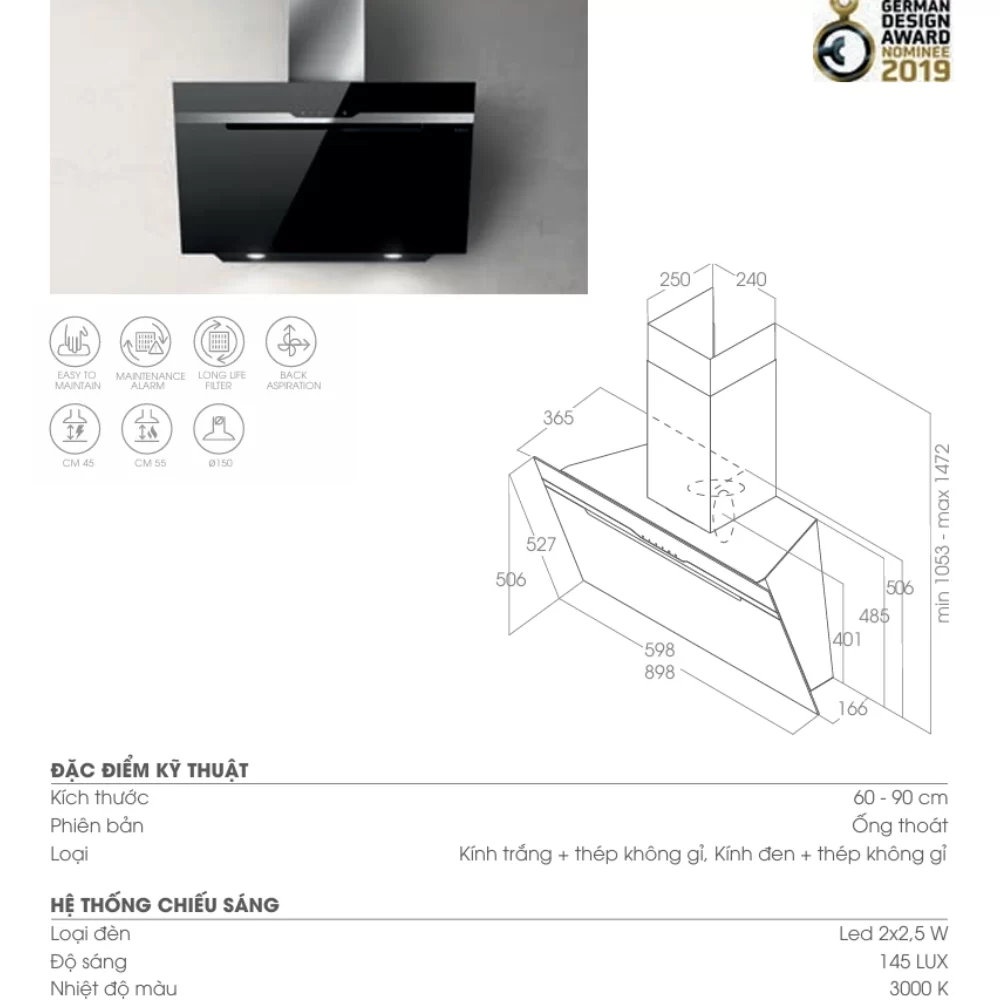 - Hiệu suất hút mạnh mẽ: Với lực hút lên đến 690 m³/h, máy giúp loại bỏ mùi nhanh chóng, mang lại không gian bếp thoáng mát và sạch sẽ.