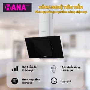 - Kiểu dáng: hút mùi vát kính, thiết kế áp tường (Decor)