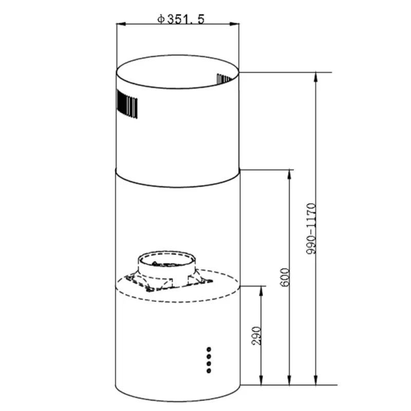 - Kích thước: đường kính 351,5 mm; chiều cao điều chỉnh từ 990 mm đến 1170 mm