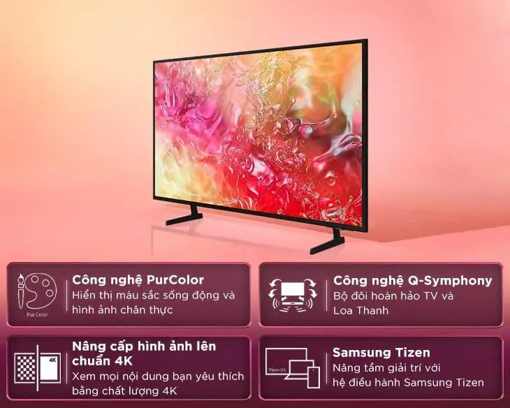 Công nghệ PurColor và UHD Dimming tạo nên những màu sắc rực rỡ, sống động, đồng thời tối ưu độ tương phản để các chi tiết tối – sáng nổi bật, còn HDR10+ giúp ánh sáng trong từng khung hình trở nên tự nhiên hơn. Những cảnh chuyển động nhanh cũng mượt mà hơn nhờ Motion Xcelerator, mang lại trải nghiệm xem phim hành động hay chơi game đầy thích thú.