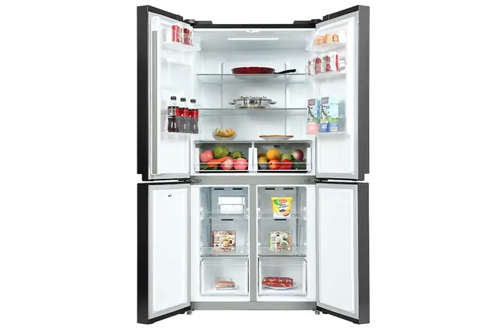- Sở hữu thiết kế multi doors 4 cửa, tủ lạnh mang lại cảm giác gọn gàng, hiện đại và giúp người dùng thao tác lấy – cất thực phẩm thuận tiện hơn, hạn chế thất thoát hơi lạnh khi mở cửa.