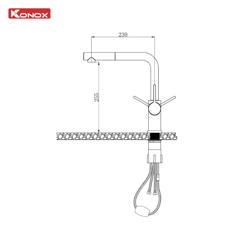 THÔNG SỐ KỸ THUẬT Vòi rửa bát dây rút Konox Lumo Smart Chrome