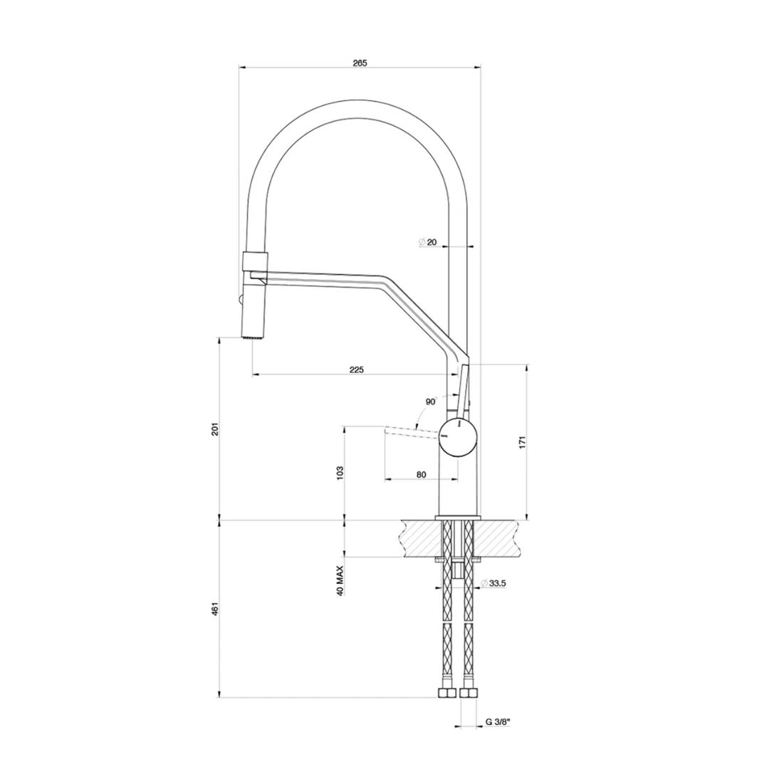 - Kích thước tối ưu: Chiều cao thân vòi 415mm, chiều cao từ mặt đá đến đầu vòi 223.5mm, phù hợp với nhiều loại chậu rửa.